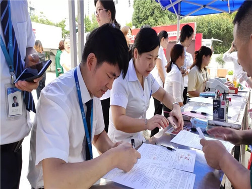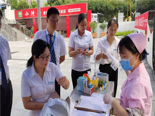 前來獻血的居然家人們在志愿者的引導下,有序領(lǐng)表登記,測定血型,量血壓,等待獻血。